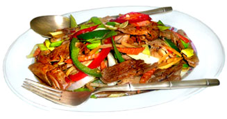Duck with leek, bamboo and chili