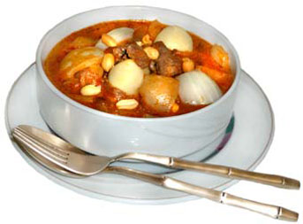 Beef Filet coconut milk Thai massaman curry, potatoes, peanuts and onions