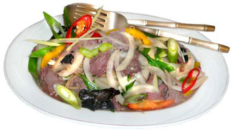 Rind Filet mit Ingwer, Paprika, Morcheln und Rotwein