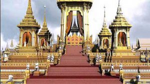 Die Königliche Einäscherung Seiner Majestät König Bhumibol Adulyadej fand an fünf Tagen statt, wobei die Einäscherung am Donnerstag, dem 26. Oktober stattfand. Der 26. Oktober war ein Feiertag, damit die Bevölkerung teilnehmen und sich von ihrem geliebten König verabschieden konnte.